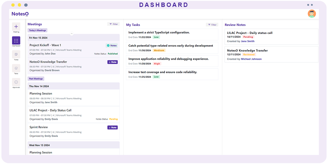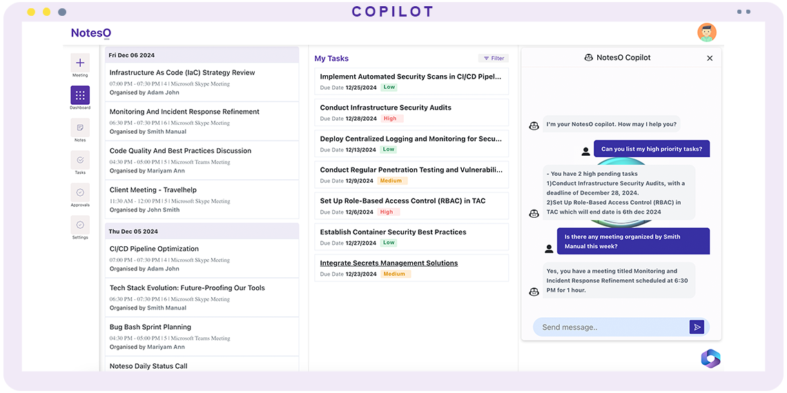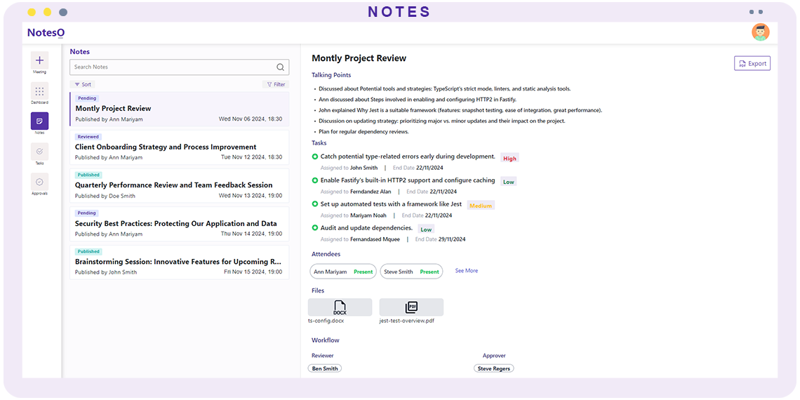 Learn how Noteso simplifies meeting management with powerful features like automated notes, task creation, and approvals in few minutes.